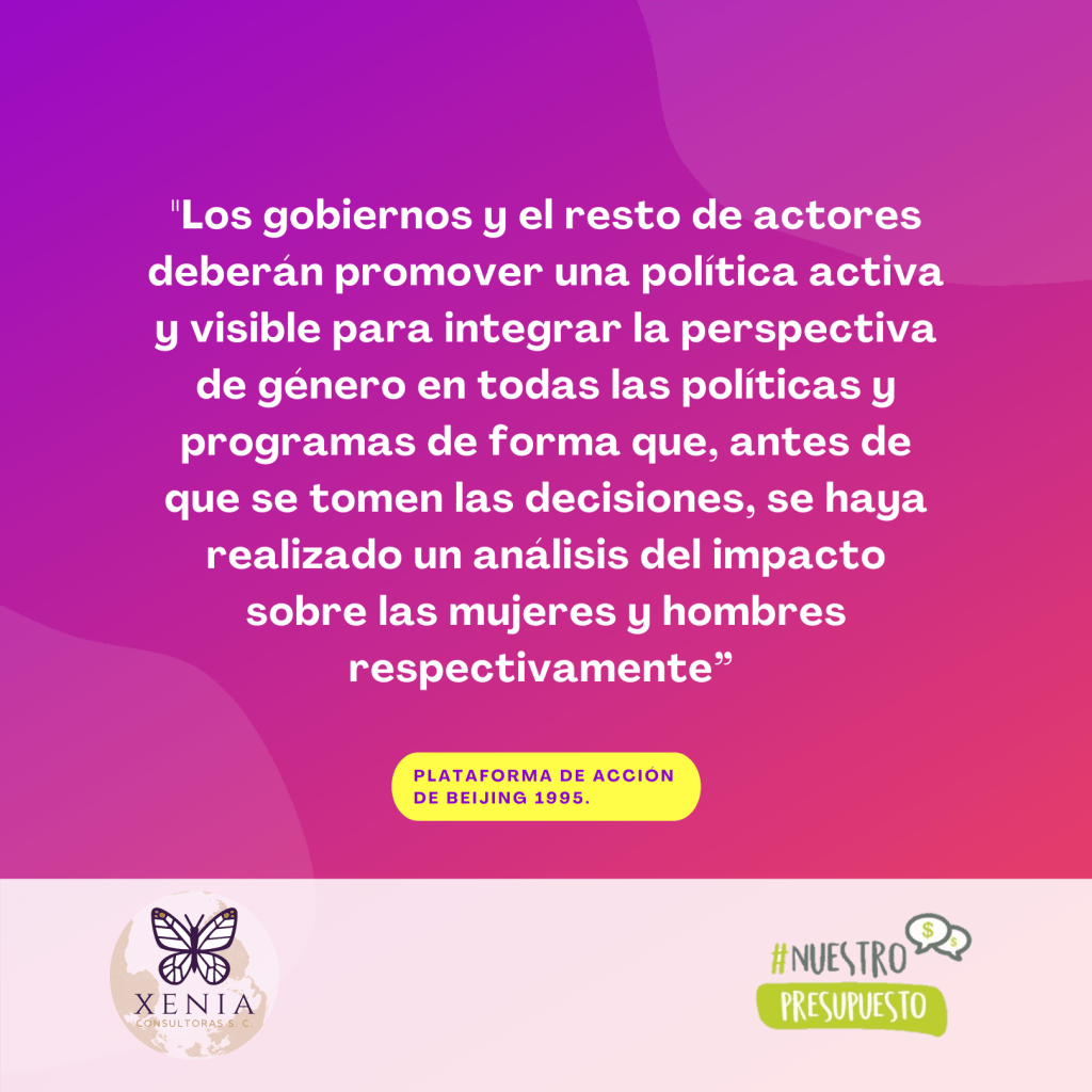 1. Realizar una investigación de impacto de género de todo el presupuesto. Se deben tomar en cuenta las consecuencias que las políticas públicas diseñadas y ejecutadas tienen en mujeres y hombres, y las diferencias en las respuestas de unas y otros a los asuntos económicos. Este análisis se debe hacer especialmente en todas las políticas de derechos humanos, desarrollo y bienestar de la entidad, incluyendo los programas sociales, políticas de generación de empleo, las medidas de atención a la pandemia de COVID-19, entre otros.